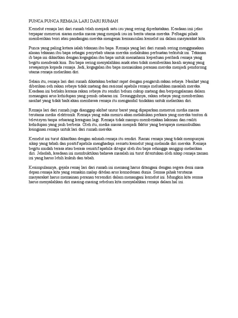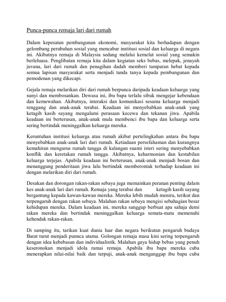 Punca Punca Remaja Lari Dari Rumah Pdf